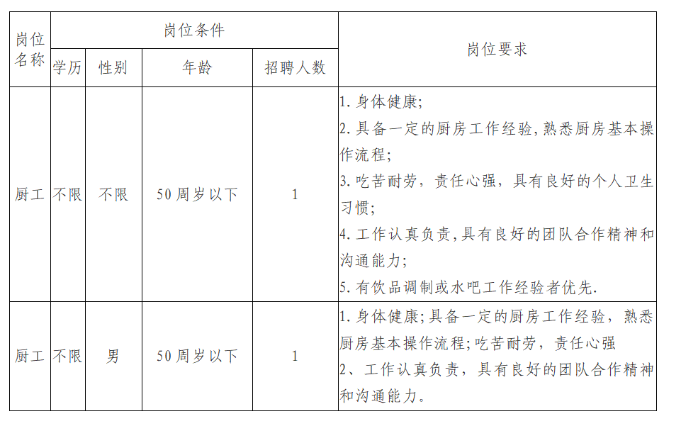 本次招聘岗位2个,具体岗位情况和要求如下。