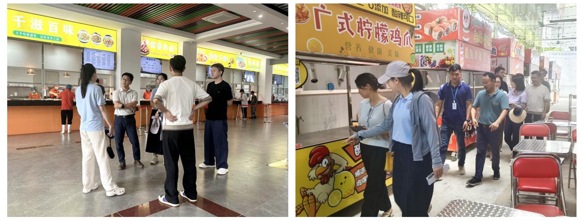 在广州理工学院(惠州校区)后勤管理办公室相关负责人的陪同下,调研团队先后参观了该校标志性建筑及校园核心功能区域。调研过程中,对方院校秉持的 “三服务三育人” 管理服务宗旨,以及在后勤运维方面的创新举措,给调研团队成员留下深刻印象。其中,依托校内美食街建筑打造 “一站式” 餐饮服务集群、创新推进校企合作 “校中校” 项目、构建覆盖学生群体的立体化宣传反馈体系等特色工作,为我校后续优化校园服务保障模式、提升服务质量提供了极具价值的参考范例。